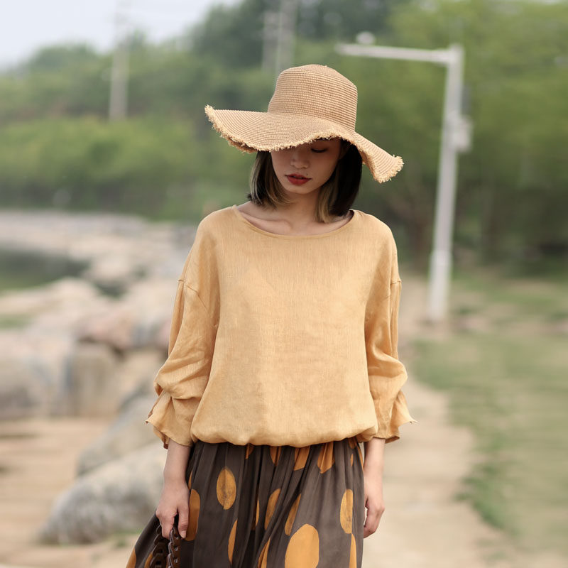 Chic linen top women's summer lazy style slightly fat belly cover top sleeve shirt linen top mature women's clothing