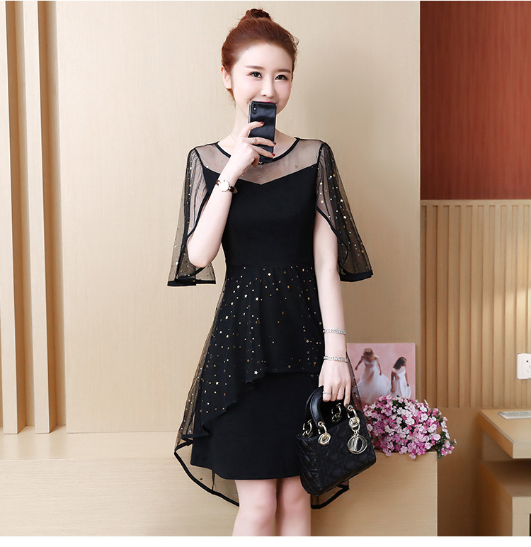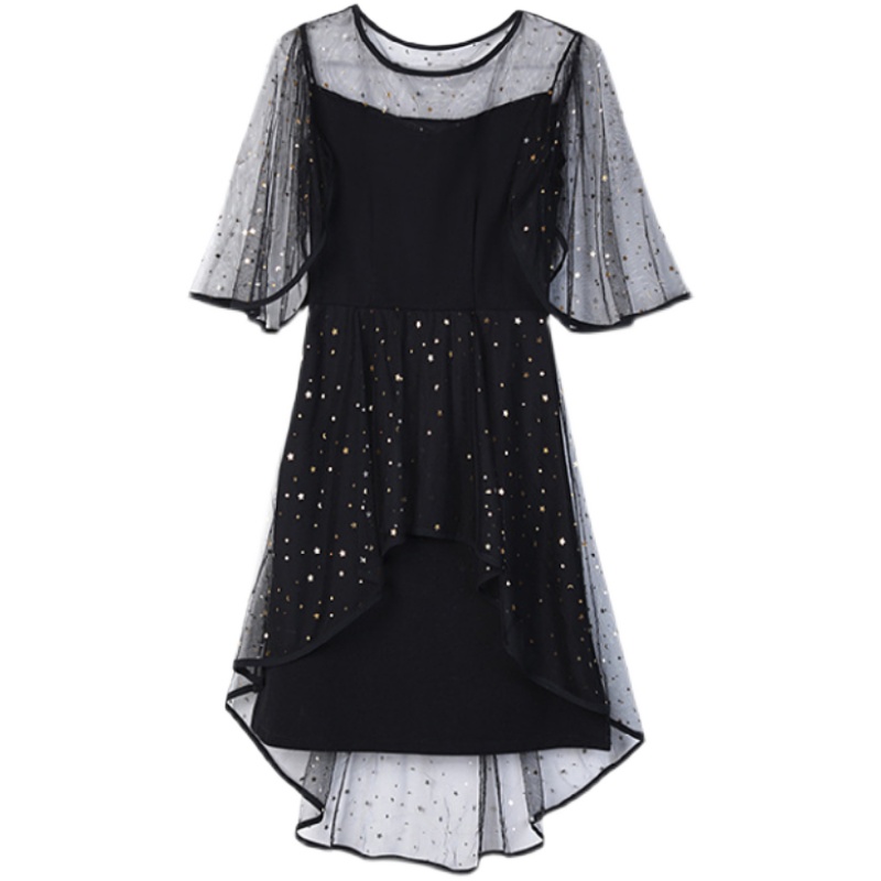 2021 Summer Dress New Fat MM Fake Two Loose Lotus Leaf Sleeve Mesh Yarn Snowspinning CD Pseudo-Pussy Dress Big Size Dress Code Foreign Dress
