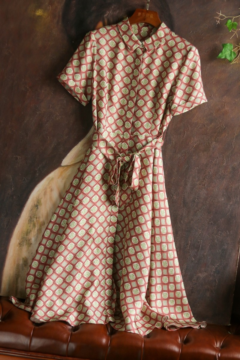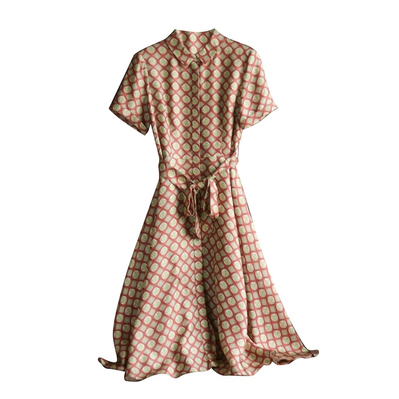 Heavy goods high-end noble ~ elegant~Small lapel waist large swing twill silk silk dress MF029