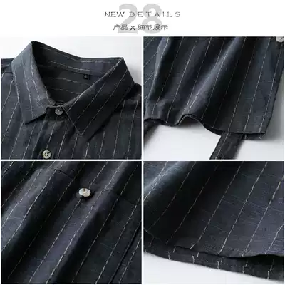 Linen striped casual short-sleeved shirt Men's spring youth loose Chinese style cotton and linen five-point sleeve shirt jacket