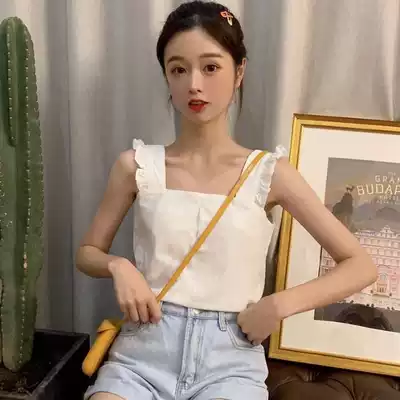 Summer new Korean version of wooden ear black suspenders wear Net Red 1 4 inch socket wrench sleeve Hyuna Ya sleeveless vest coat female tide