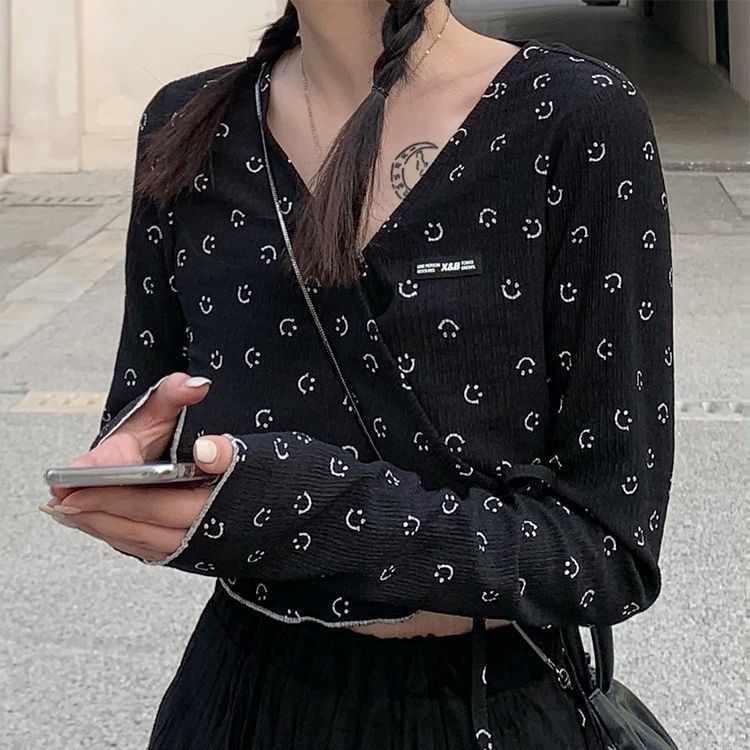 Salt Short Sweet Woman Costumes 2022 Spring and Summer New Han - shaped Skin V - collar long sleeve design