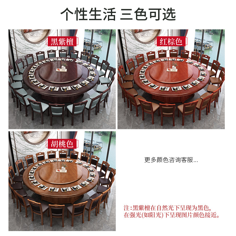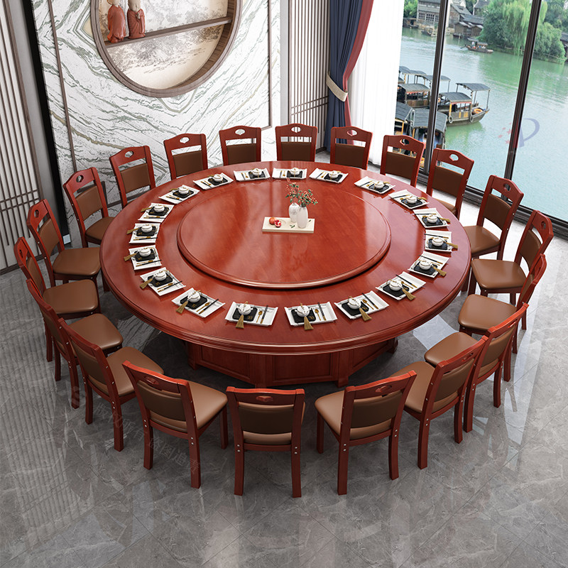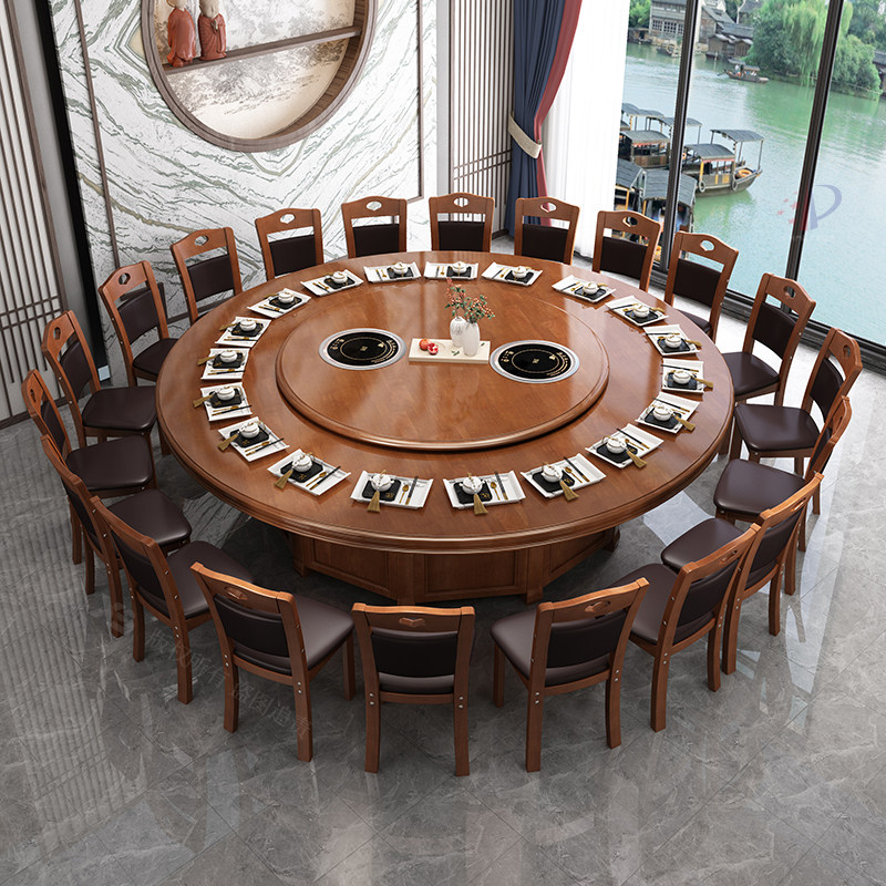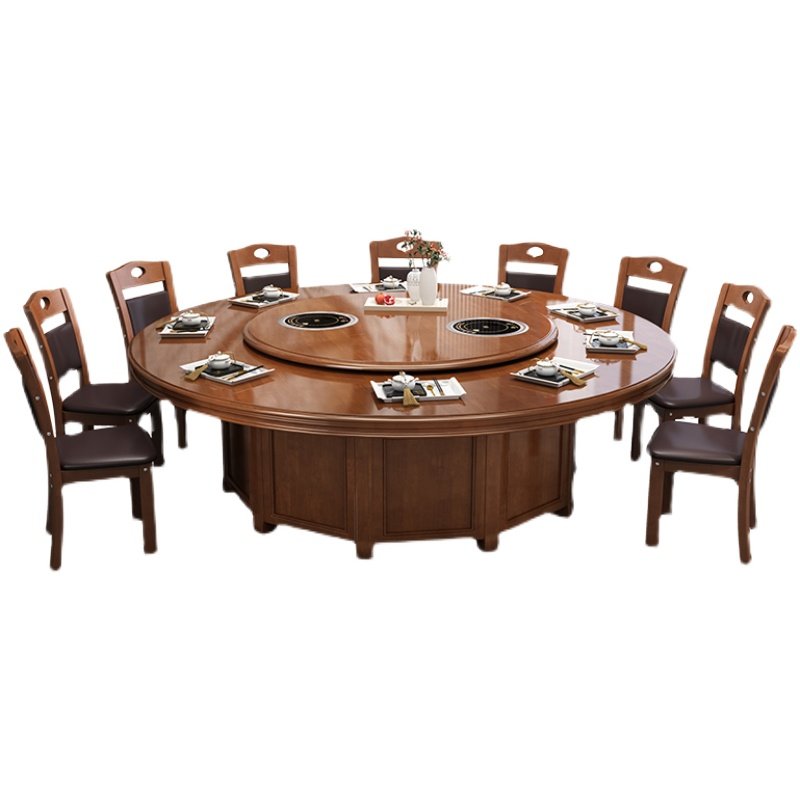 Hotel electric dining table large round table 18 20 30 people box club hotel solid wood table and chair combination with induction cooker