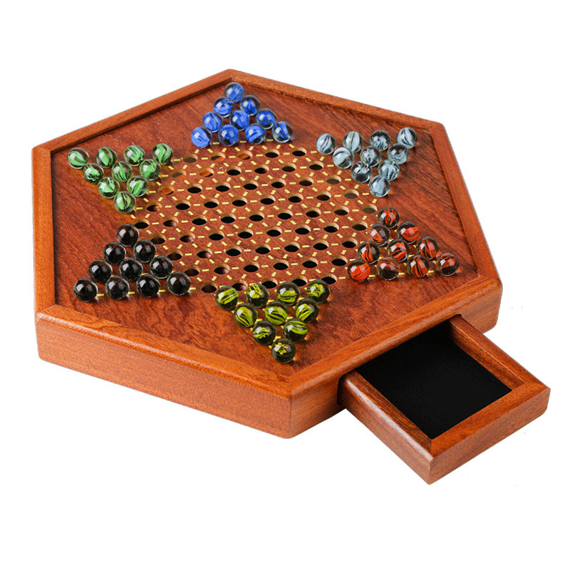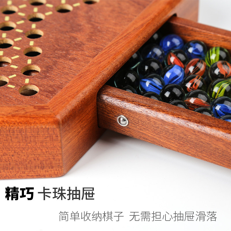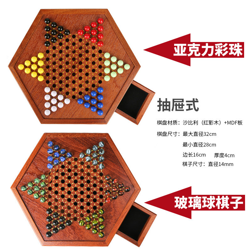 Checkers glass ball beads children's adult puzzle game high-end large old-fashioned wooden chessboard checkers