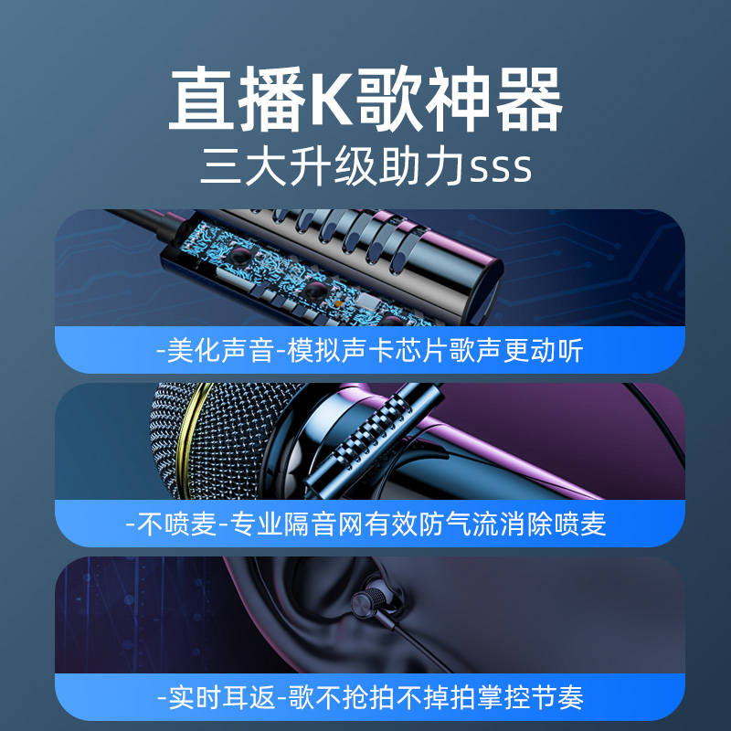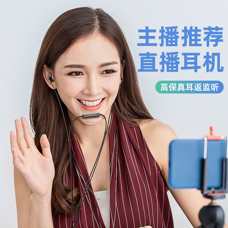 (Anchor Recommended) Dual microphone headphones In-ear Live Listening Ear Back Wired High Sound Quality Universal K Song Record Singing Voice Card Recording Singing COMPUTER EAR Fitness for Huawei