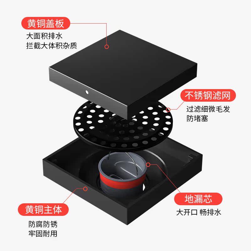 German Hvieu full copper floor drain thickened deodorizer invisible makeup room shower room washing machine dual-use