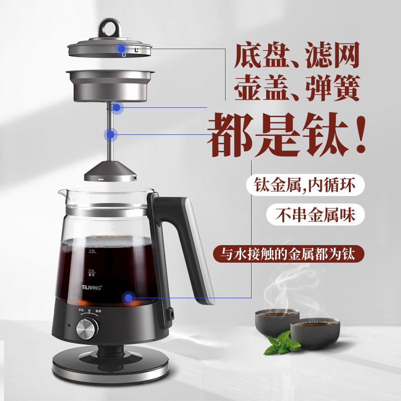 Tiliving Titanium Alloy Cooking Teapot Home Anhua Black Tea White Tea Special Glass Spray Style Steam Cooking Tea-Taobao