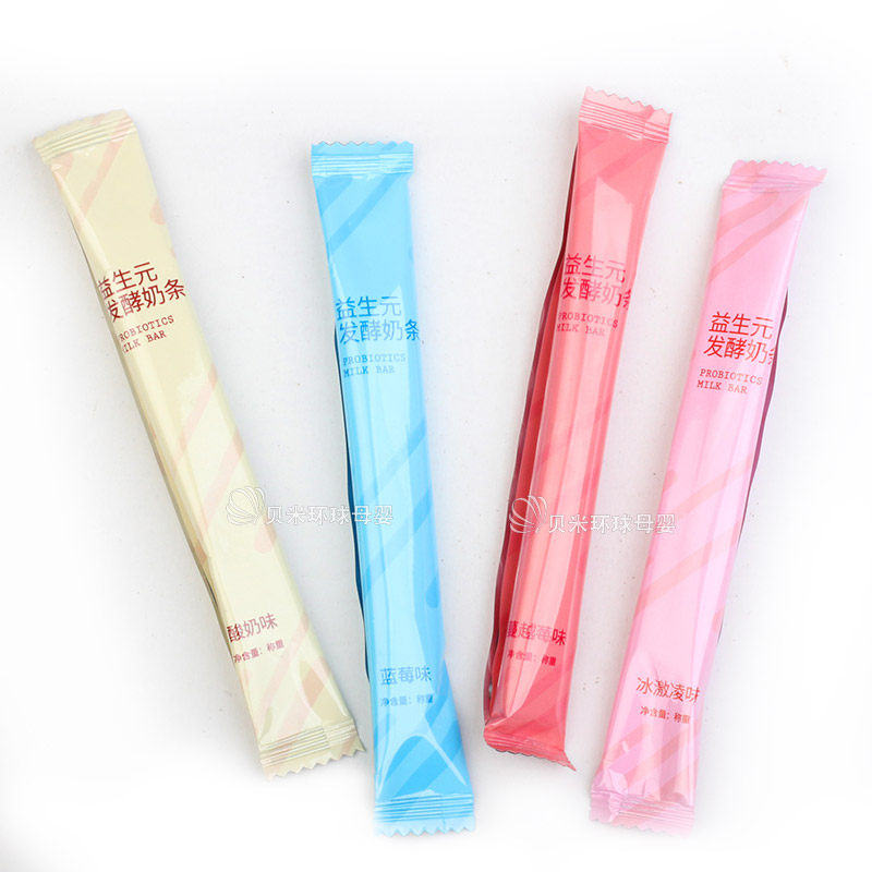Fermented milk strips (yogurt taste) fermented milk strips (blueberry taste) fermented dairies (cranberry flavor) fermented milk strips (ice cream flavor)