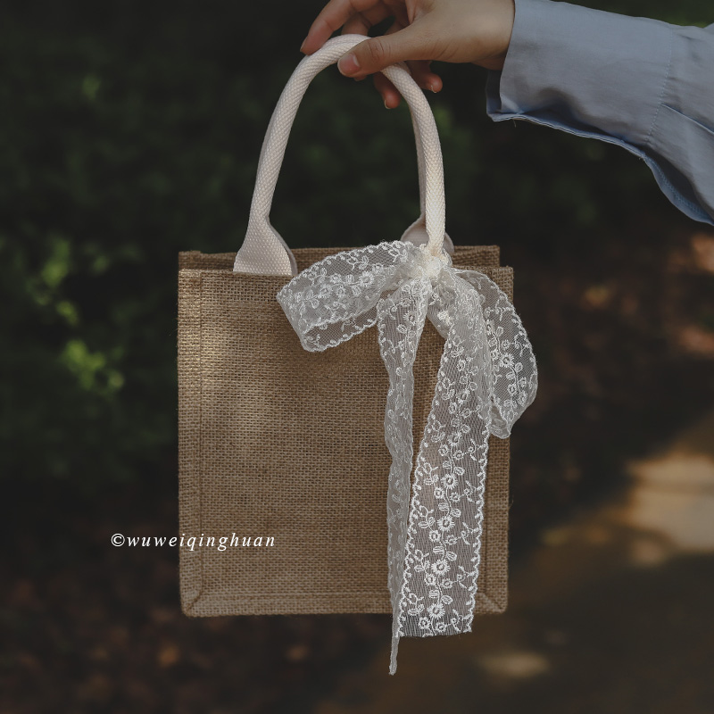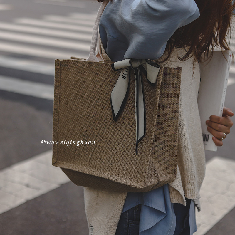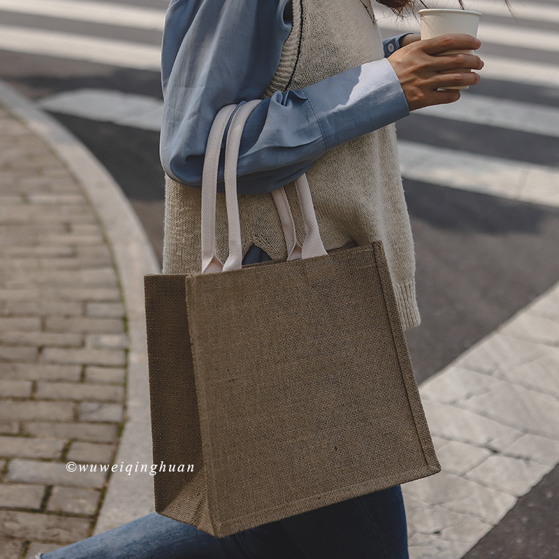 Tasteless clear and unstamped wind jute handbag small crowdsourced high-grade sense DIY eco-friendly bag large capacity sails bag