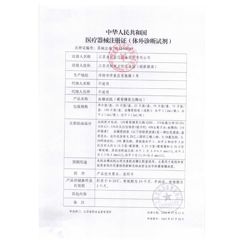 YZB Su 0101-2012 Blood Glucose Test Paper