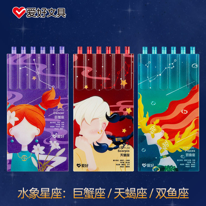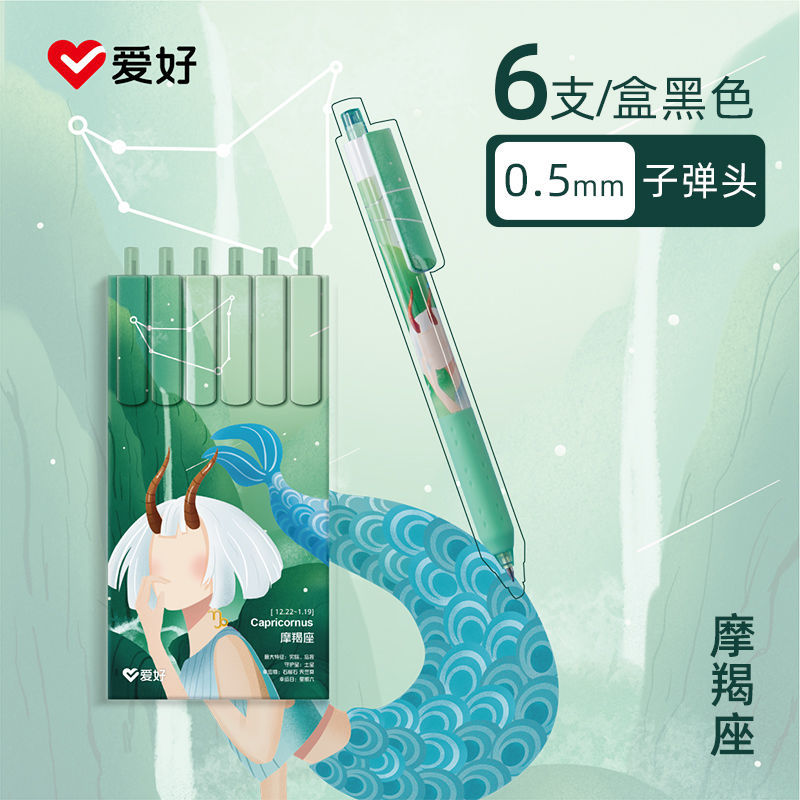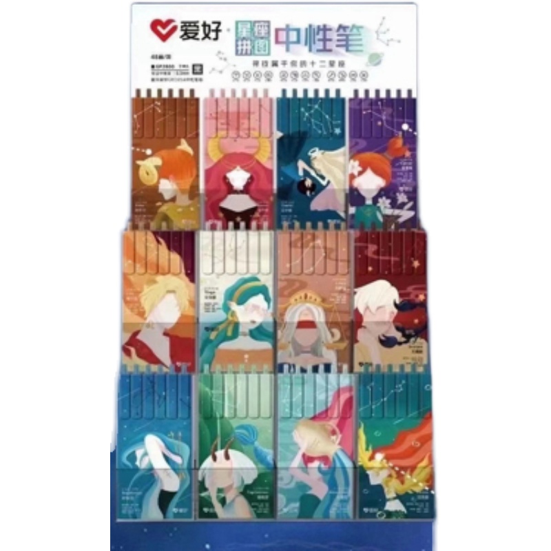 Hobby Plastic Press Pen Twelve Constellation Gel Pen Boxed Black Gel Pen Stationery Oily Bullets