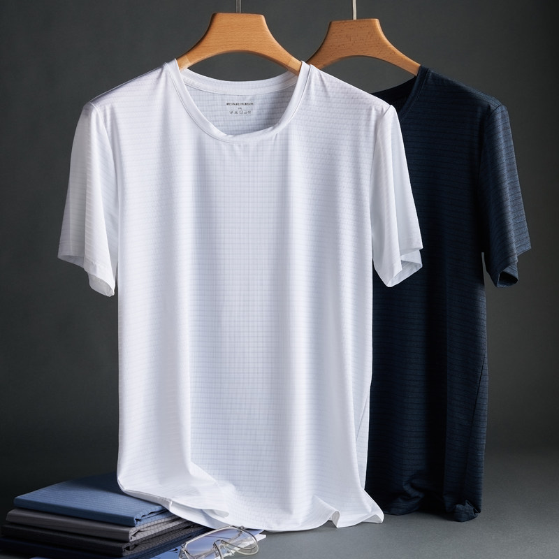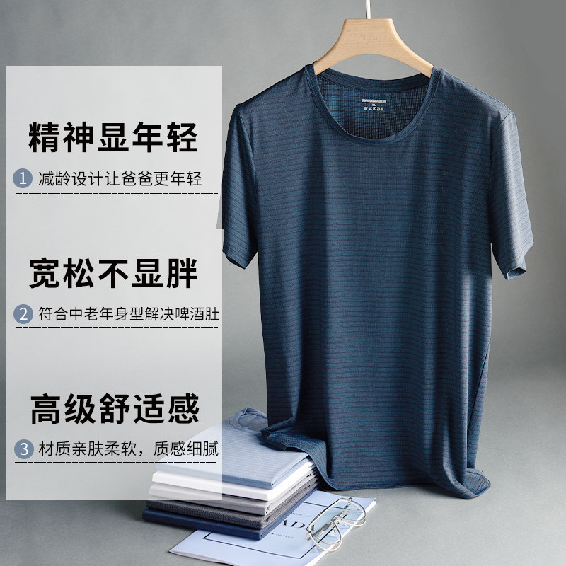 Middle Aged Men Summer Ice Silk Short Sleeve T-shirt Dad Summer Clothing Loose Speed Dry Blouse aged 50 Father