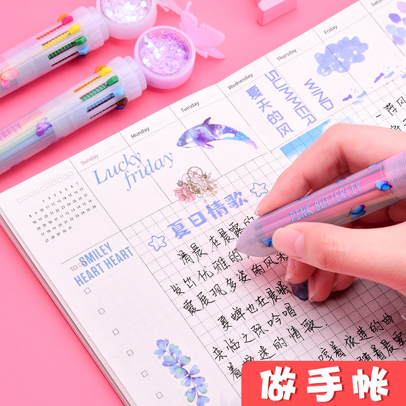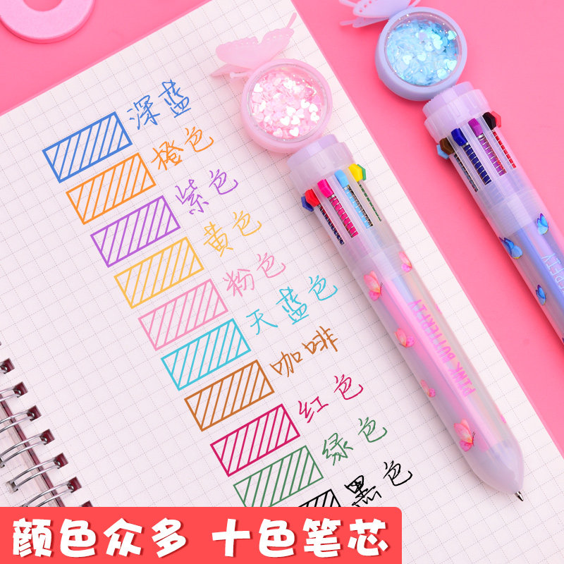 Multicolor Ballpoint Pen Color Press Action Middle Pen 10 Color Multicolor Pen All-in Notes Special Tagged South Korea Nets Red Teenage Girl Doing Handbills Multifunction Deco atomic pens Rewards small gift prizes