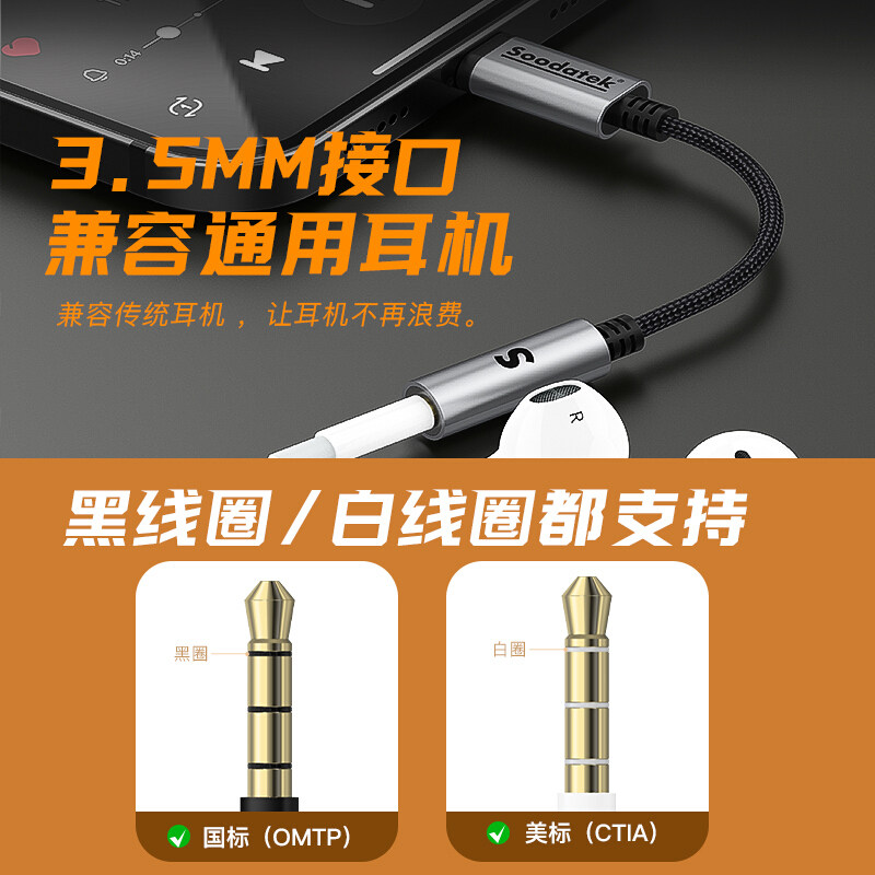 Apple headphone adapter (MFi certified 3 5mm round hole) Type-C turns 3 5mm round hole (Android iPad applies)