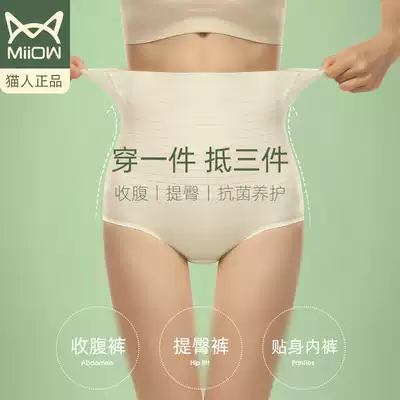 Cat people high-waisted underwear women's antibacterial cotton crotch waist waist hip waist small belly powerful seamless summer thin corset pants
