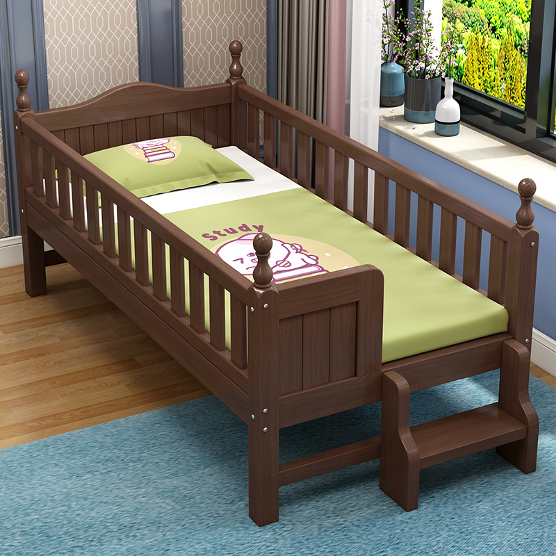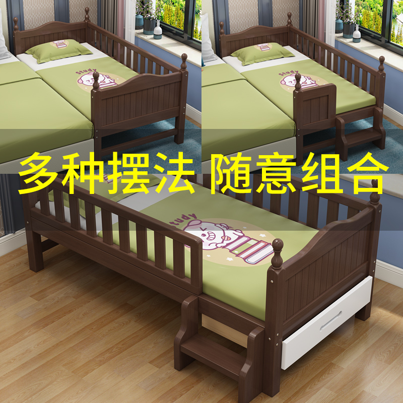 Solid wood children's bed baby baby small bed stitching big bed widened side bed with guardrail boy and girl single custom