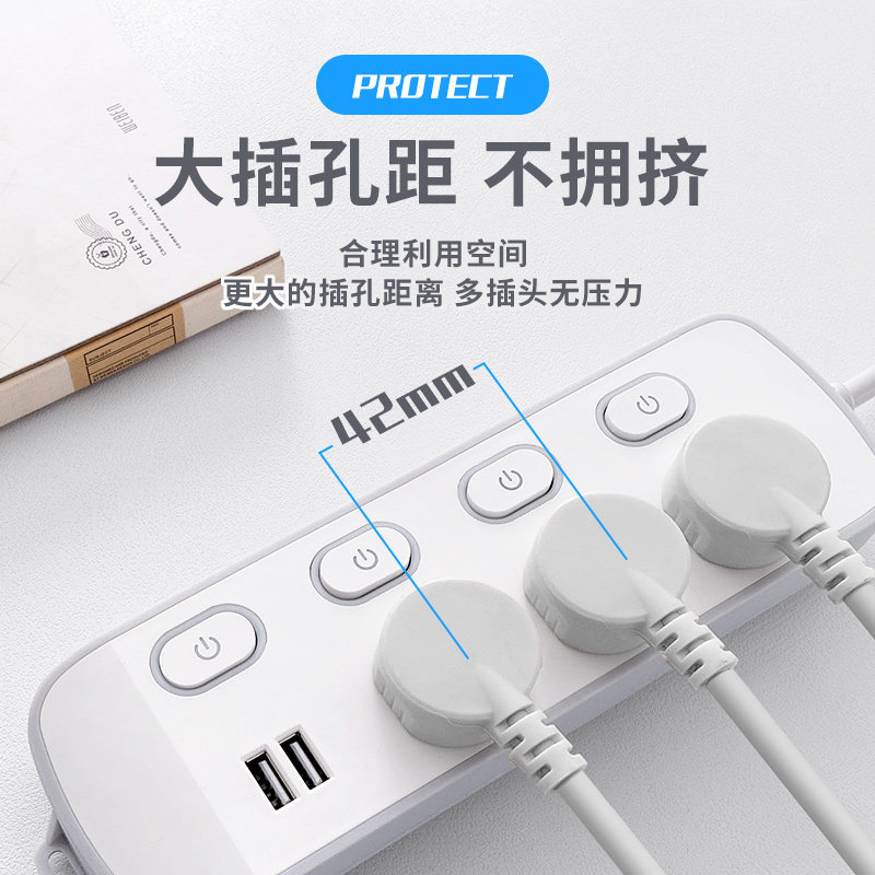Home Multi-Plugged Socket Panel Porous Insert Multifunction Independent Switch Delay Long Line Multipurpose Plugboard With Wire