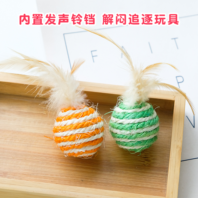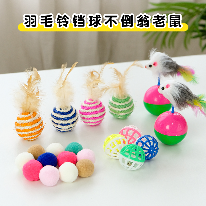 Cat Toy Teasing Cat Feather Bell Balls Self-Hi-bite Tooth Sisal Ball Tumbler tumbler Tumbler Cat Toy Suit-Taobao