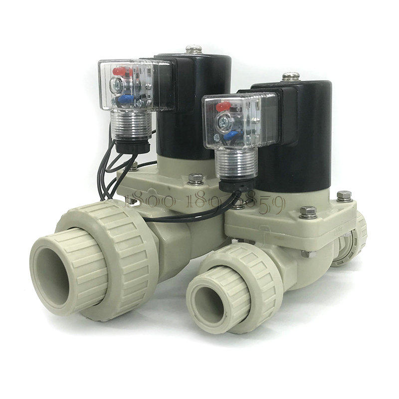PPH solenoid valve DN15 polypropylene 20 industrial acid-base electronic valve 4 points PP plastic anti-corrosion 25 hot melt live connection