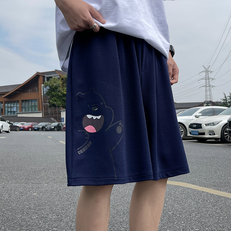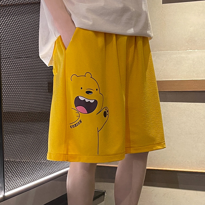 Summer Tide Signs Ins Little Bear Ice Silk Shorts Male Loose Large Size Outside Wearing Straight Drum 50% Pants Trendy Beach Pants Men
