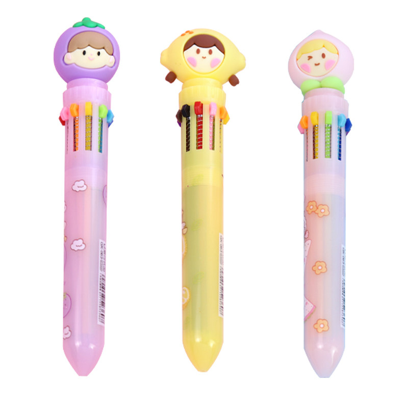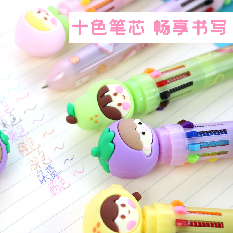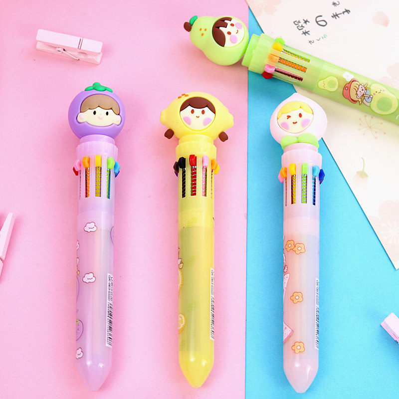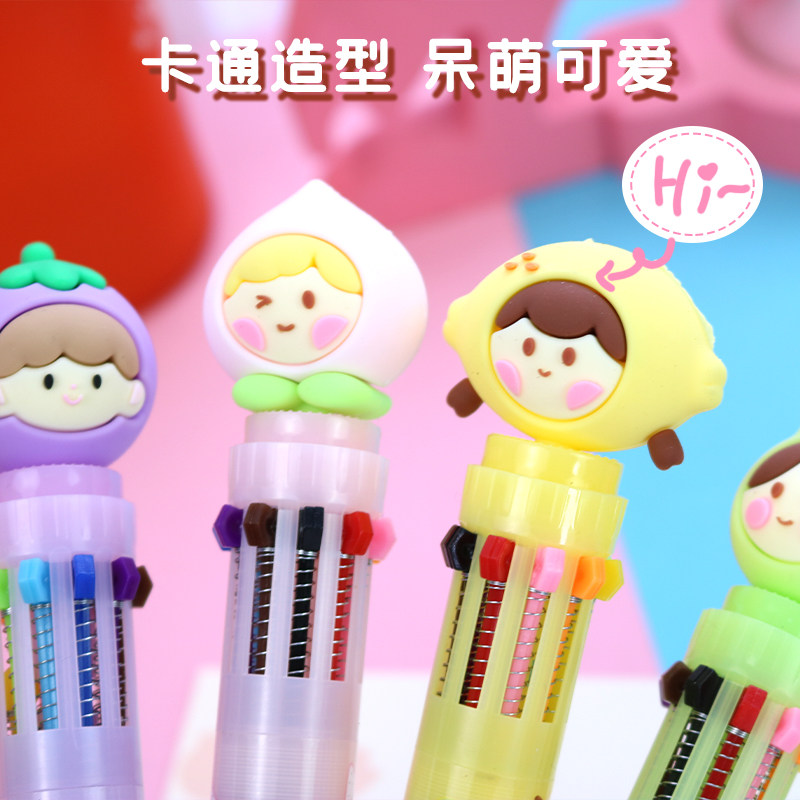 Fruit Girl Ballpoint Pen multicolored pressing pen Multi Color by moving peach Teenage Girl Cute Bull Oil Fruit Student Stationery
