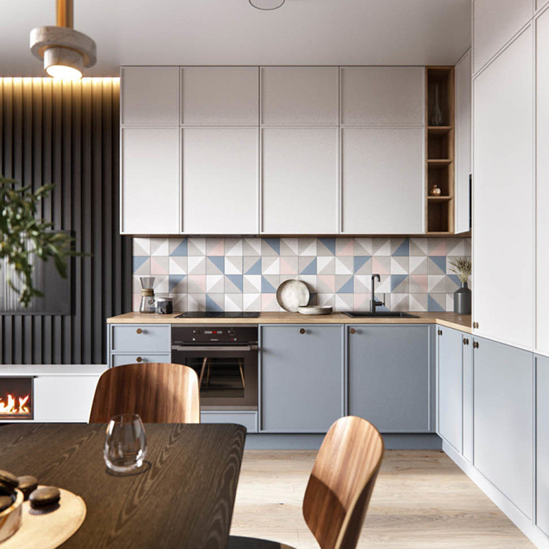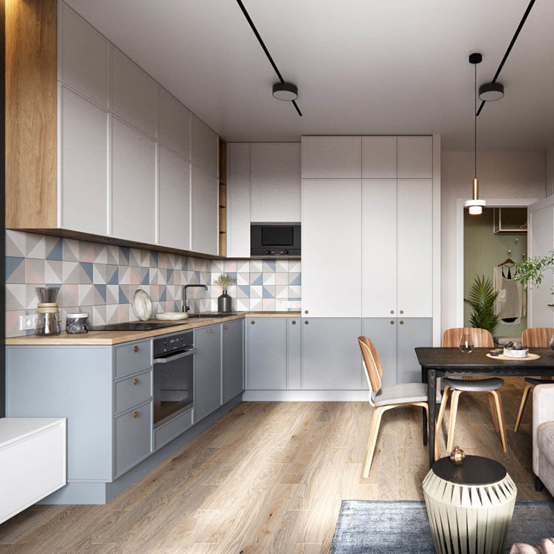 The integral cabinet customizes the modern minimalist kitchen?Car set to be environmentally friendly E0 stage dei blue L shaped overall cabinet assembly design