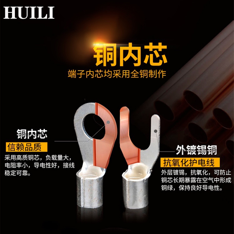 Cold-pressed terminal red copper RNB2-3 round bare end thickened terminal wire wiring copper connector wire ear
