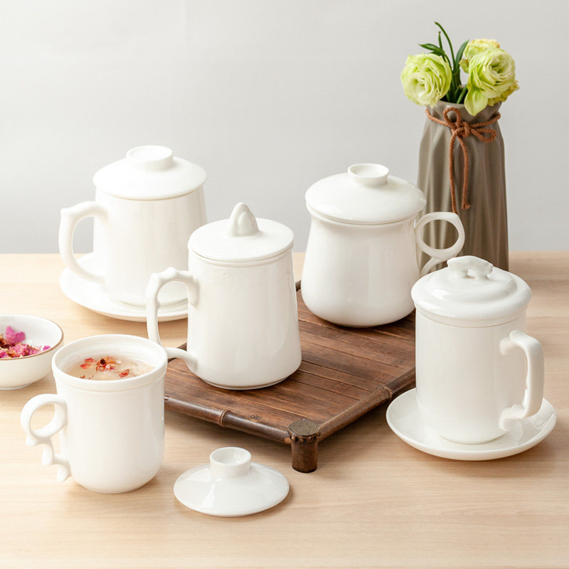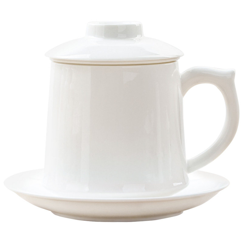 Pure white bone ceramic cup ceramic cup large capacity office cup teacup separation filter belt cover tea leak cup