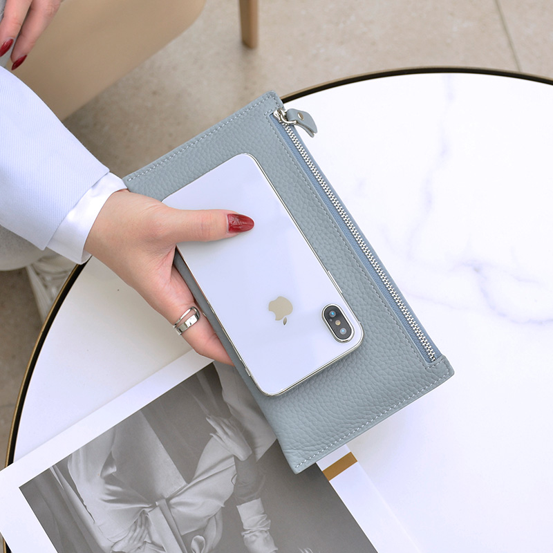 Leather wallet ladies long version simple 2022 new ultra-thin compact ins mobile phone bag fashion cowhide clutch