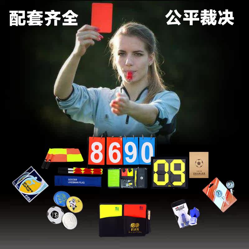 Football match referee supplies Side flag picker Red and yellow card referee equipment Professional mouth guard whistle patrol flag