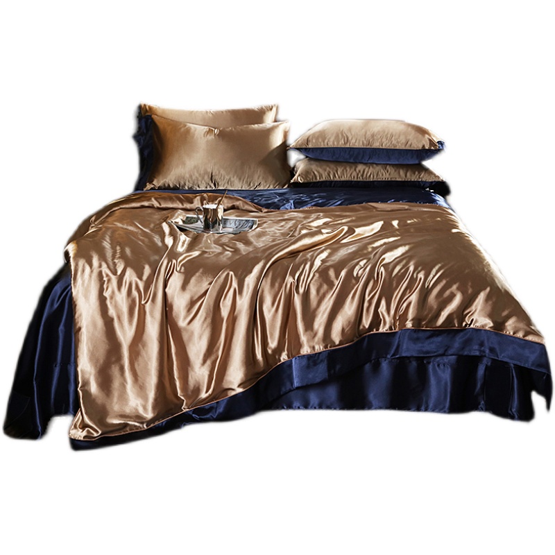 High-end genuine silk four pieces of light and luxurious mulberry silk linen cover European-style bed with cool feeling heather and sun-covered summer