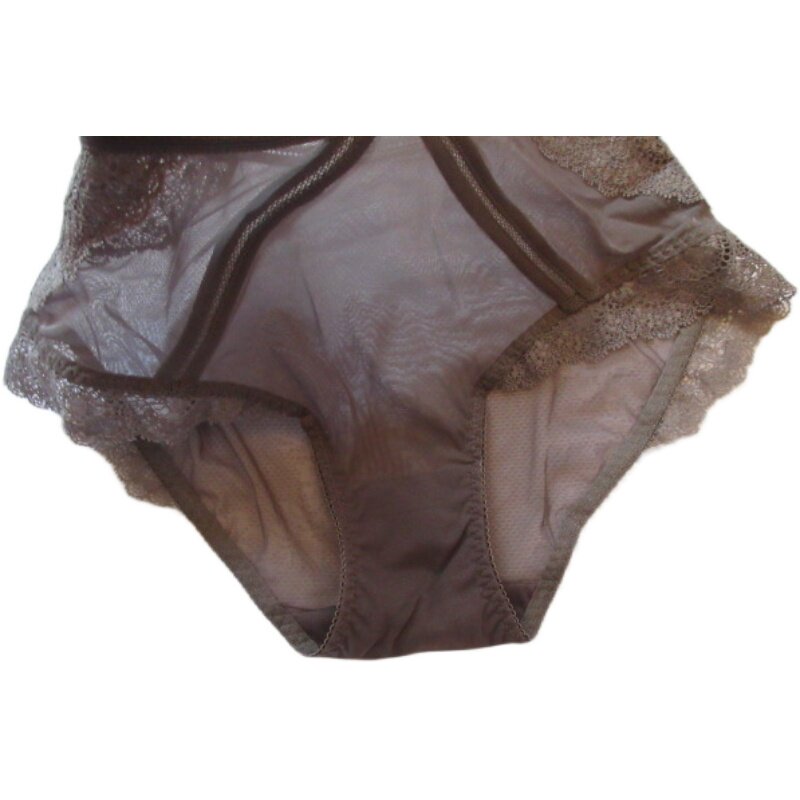 Summer thin sexy lace edge semi-see-through triangle mid-waist panties transparent buttocks for ladies L XL XXL