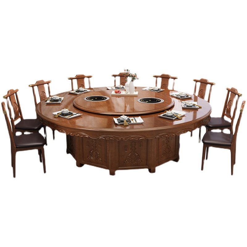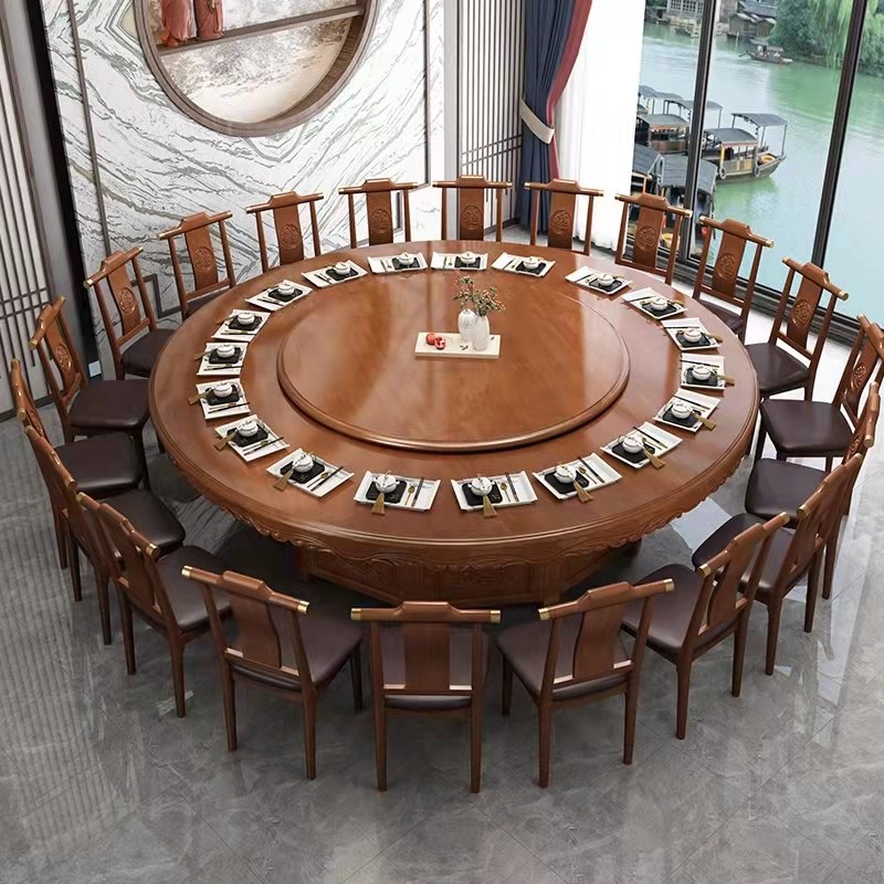 Hotel large round table electric turntable dining table restaurant table and chair combination private room private room with 18 20 26 people new Chinese style