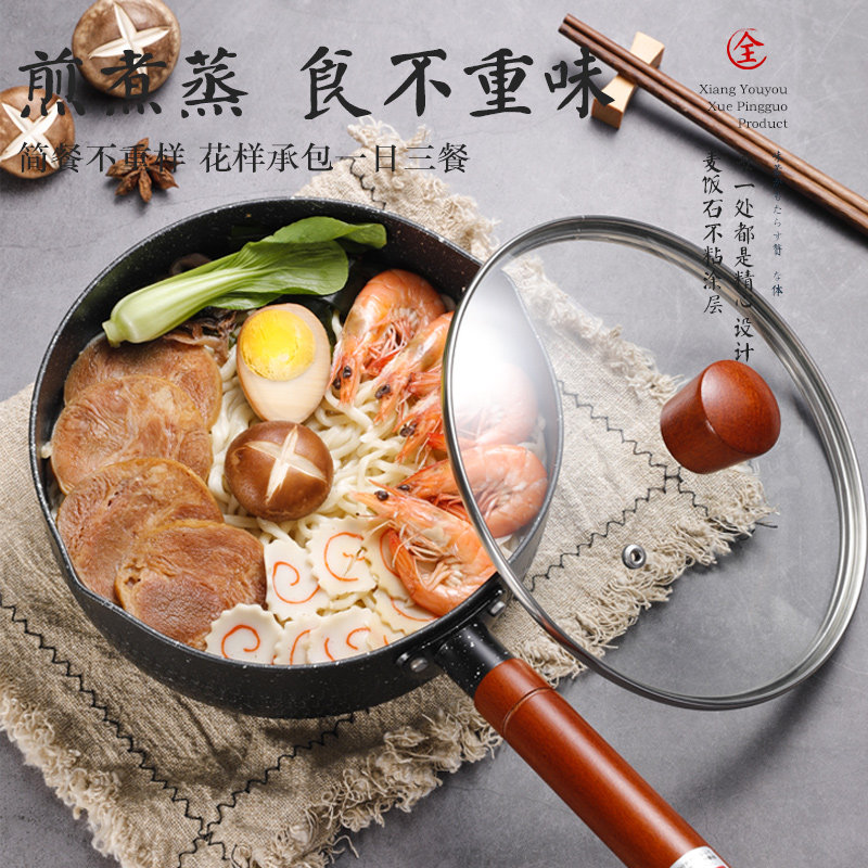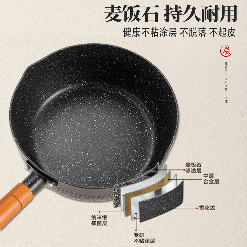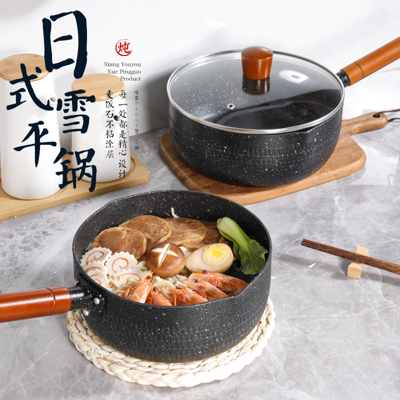 Japanese-style snow flat pot Non-stick pot Japanese wheat rice stone milk pot Household cooking instant noodles small cooking pot Hot milk gas small pot