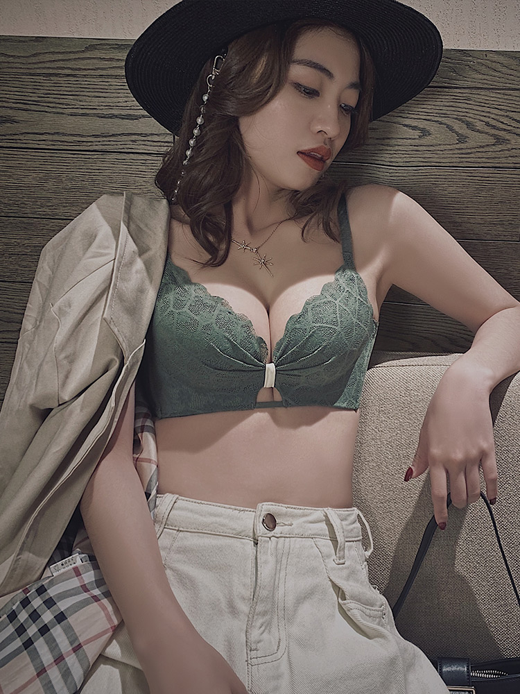 Underwear women's no steel ring small chest gathered adjustment type closed breast anti-sagging thin section flat chest special bra set