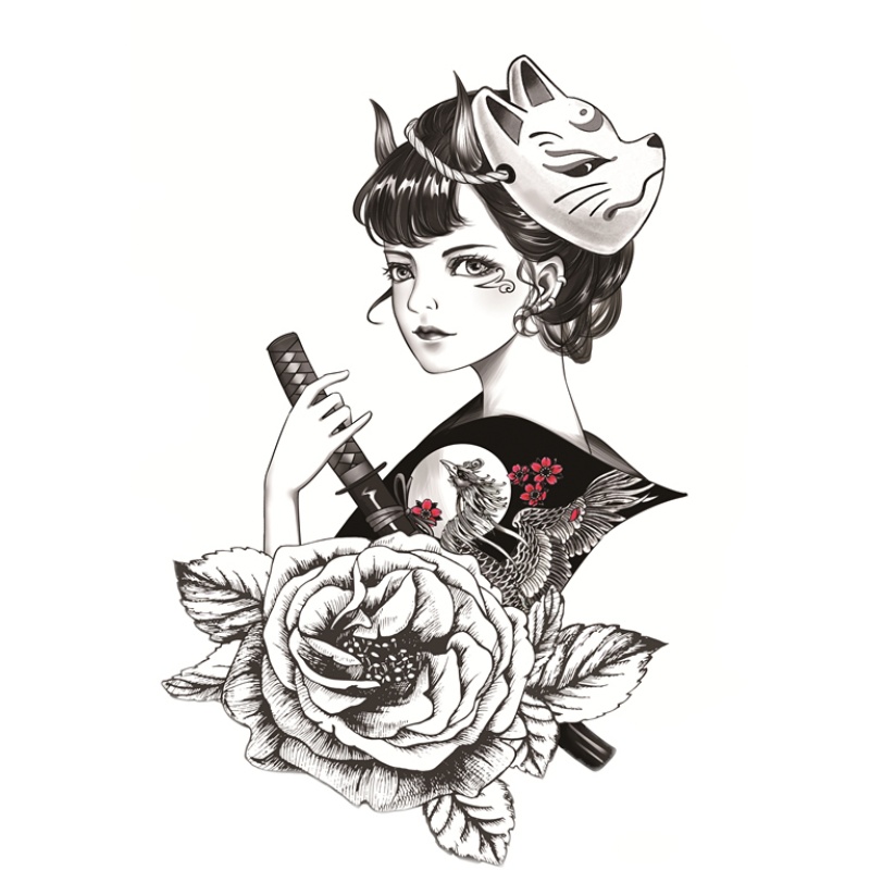 Geisha Tattoo Sticker Waterproof and Persistent Tennis Red Ins Wind Dark Black Ensemble Totem Arm Emulation not permanent 1 year
