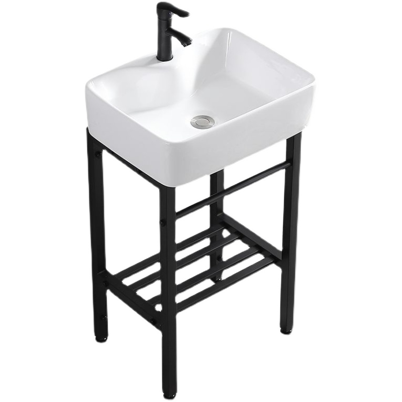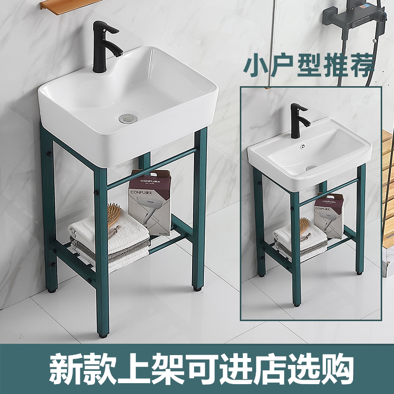 Small Household Type Floor Type Ceramic Washbasin Washbasin Makeup Room Stainless Steel Bracket Outdoor Balcony Integrated Table Basin