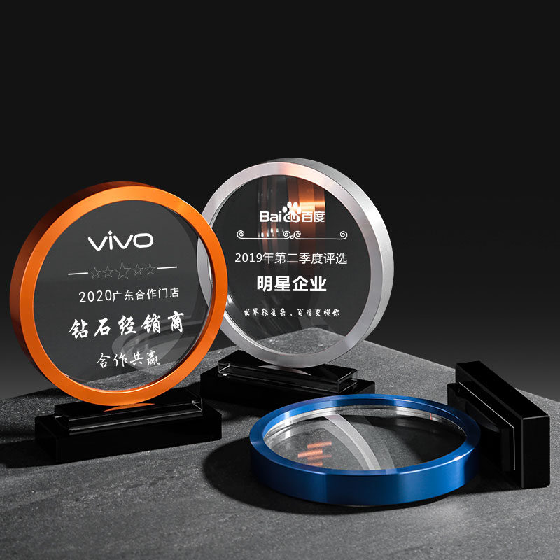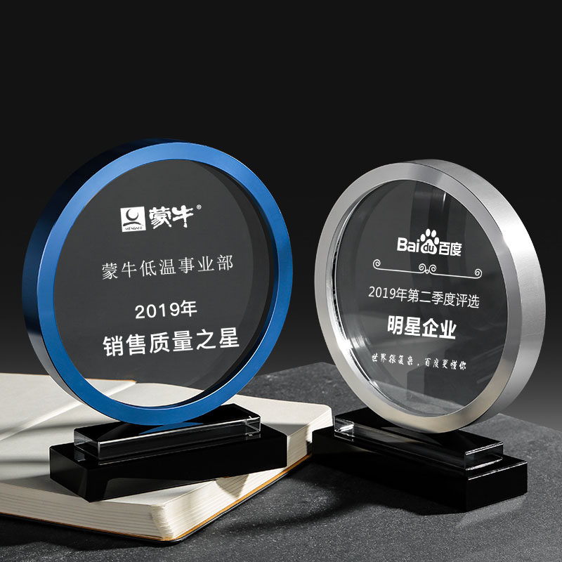 New Round Metal Trophy Custom Set Making Creative Crystal Enterprise Annual Conference Awards Excellent Employees Upscale Medals