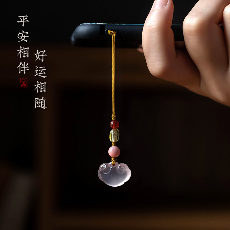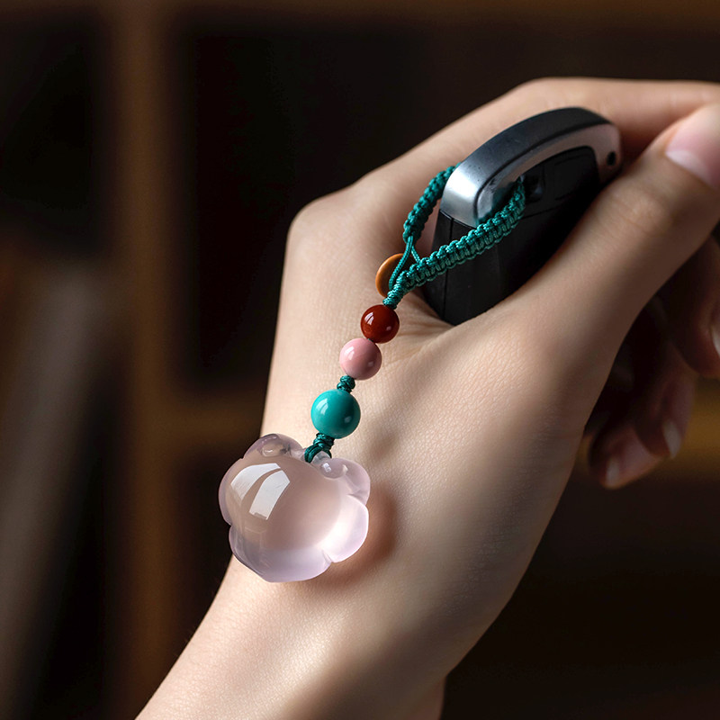 Great good hall natural powder crystal Ping An Ruyi car key buckle pendant female delicate cute phone chain small pendant