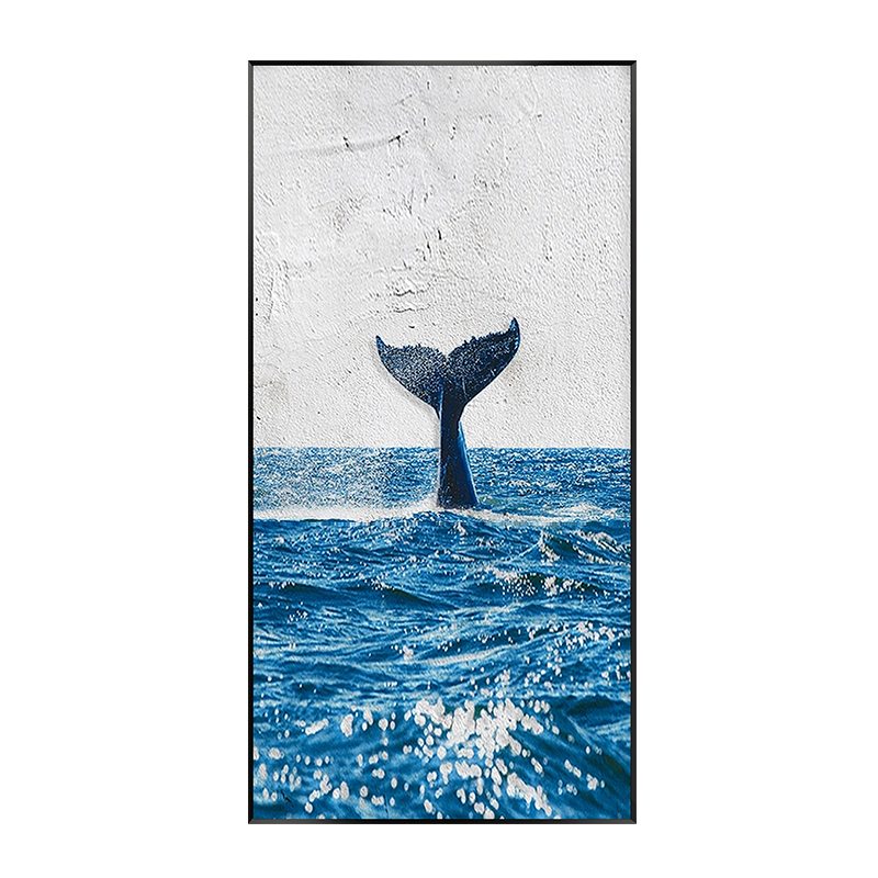 Pure Hand Painted oil painting Modern minimalist fish Abstract Painting Animal Sea Whale hyun Guan Guan Decoration Painting Veranda Aisle vertical version hanging painting