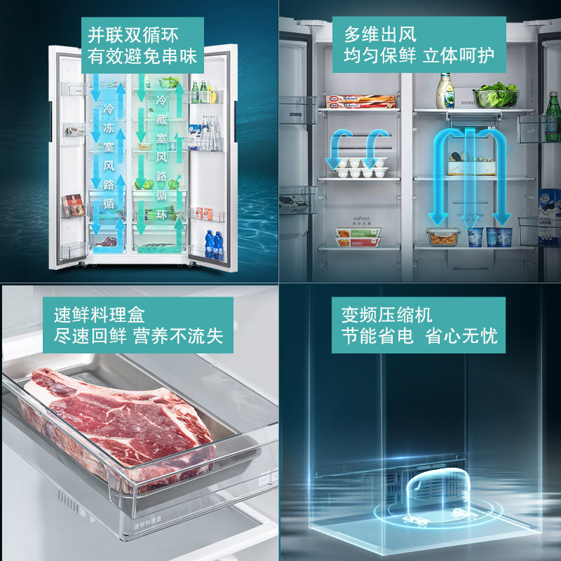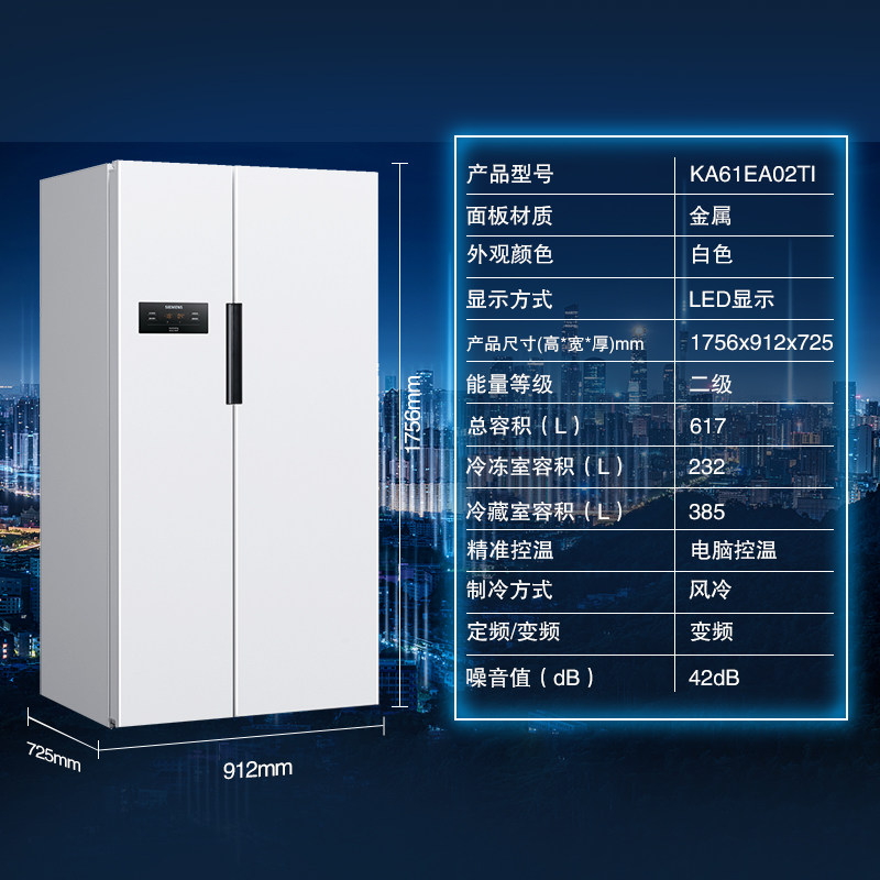 Siemens official 617 liters frequency conversion double switch pair open door Home energy saving Large capacity Refrigerator KA61EA02TI