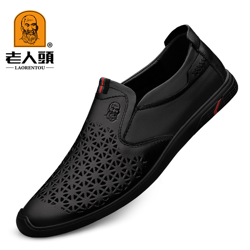 Old man's head leather shoes men's summer genuine leather breathable hollowed-out men's casual leather sandals Shoe headlayer Bull Leather Punching Hole Shoes