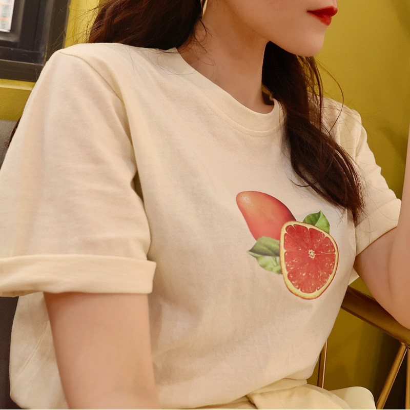 Small short-sleeved T-shirt women 2021 new summer loose cotton cute print shirt round neck T-shirt