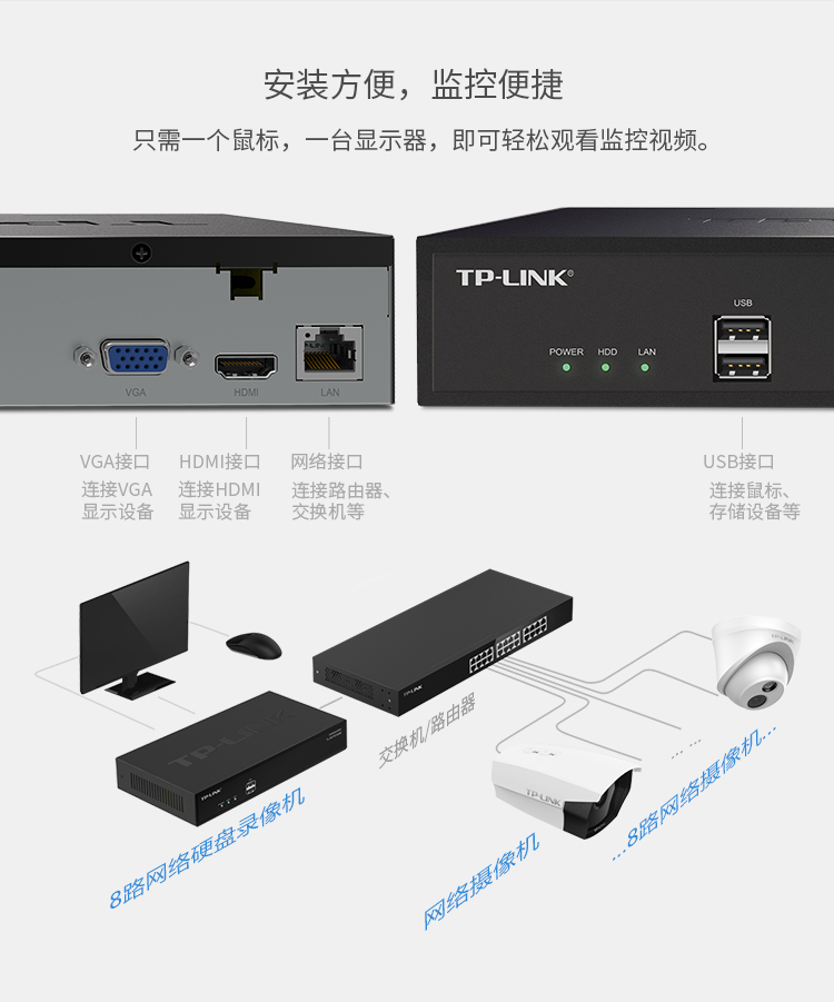 TP-LINK TL-NVR5108K 8-way iron case harddisc recording machine H 264 cloud NVR hard disc recorders