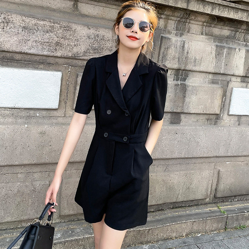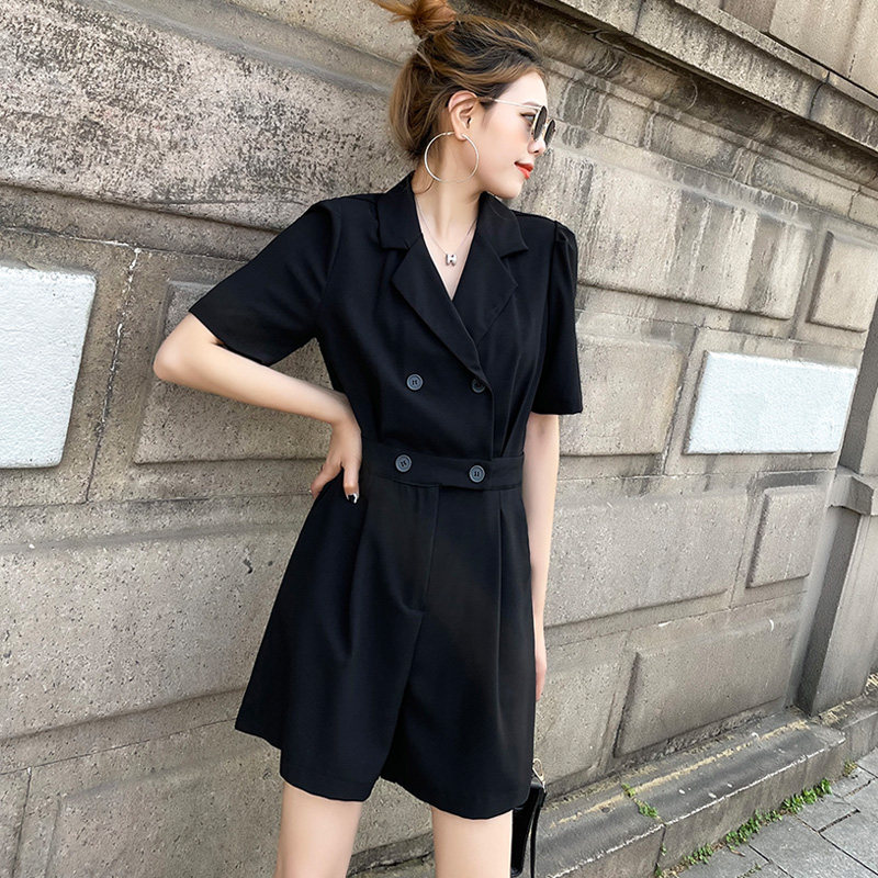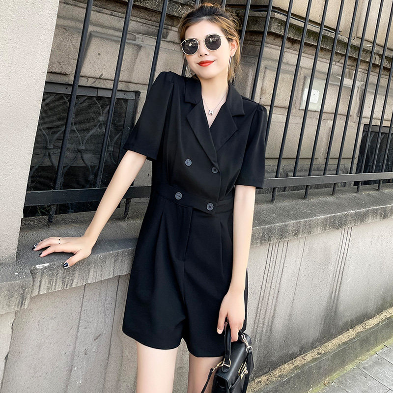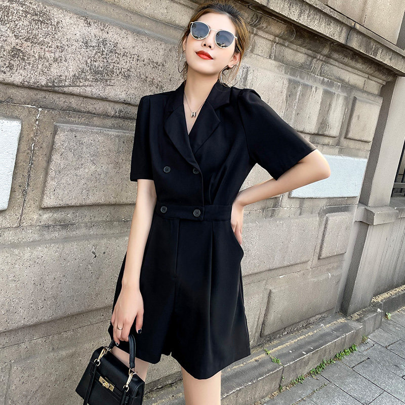 Blazer jumpsuit women's summer black thin thin Korean version of the 2022 season new French wide-leg jumpsuit