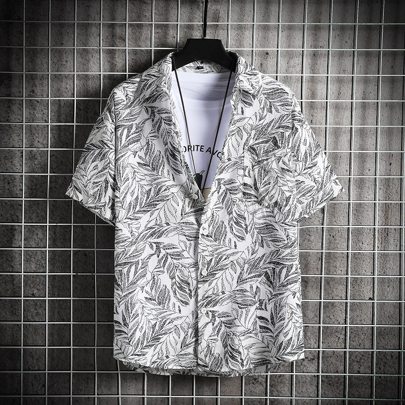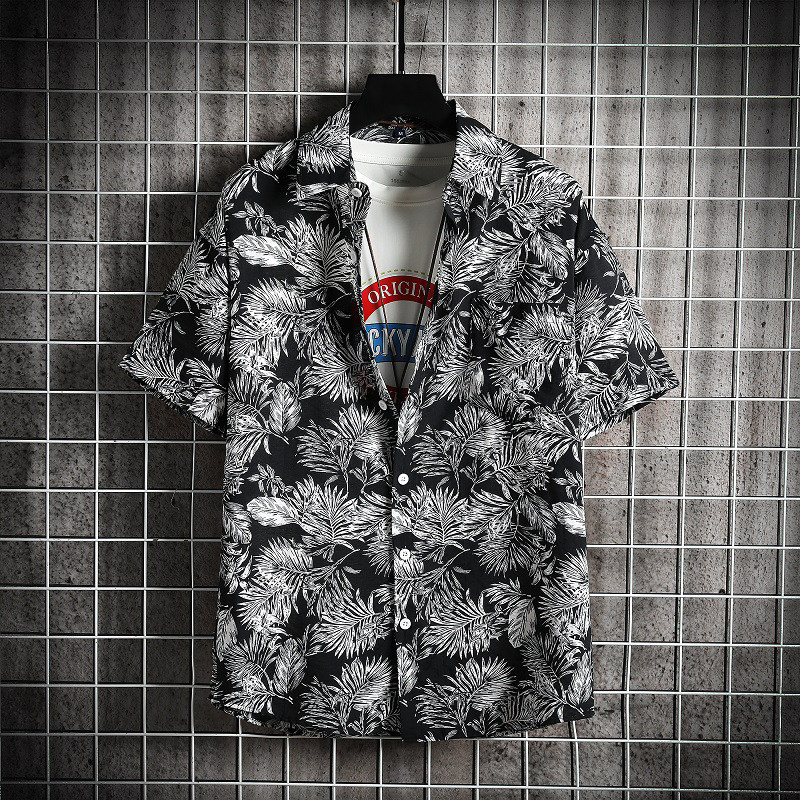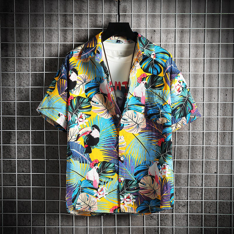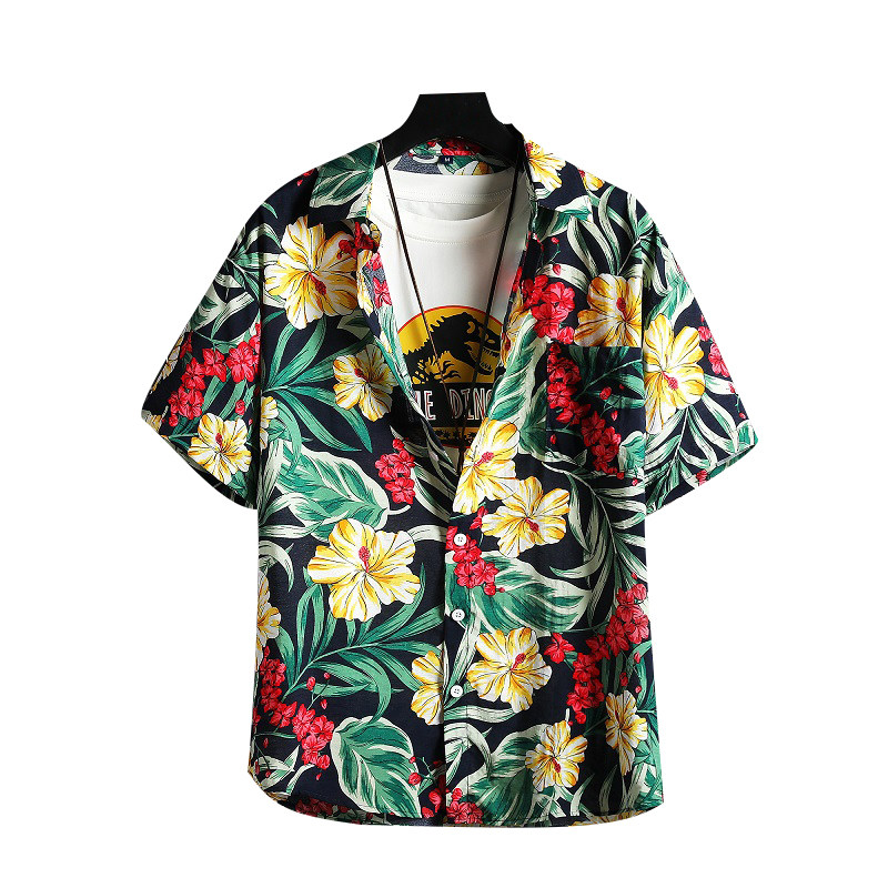 Hawaiian Flowers Shirt Male Short Sleeve Loose Large Size Yard ICE SILK BEACH SHIRT TRENDY LEAVES JACKET MALE SUMMER SEASON