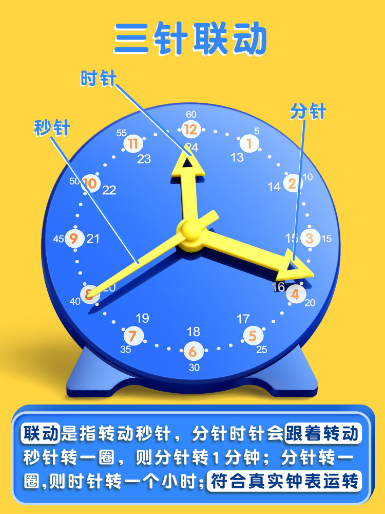 Clock model primary school teaching aids to recognize time First and second grade primary school students teaching clock face three-pin children's learning tools Learning students use three-pin 3-pin linkage teaching mathematics teaching aids to recognize the clock