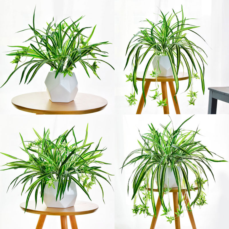 1 bunch of long Chlorophytum (without vase) 1 bunch of short Chlorophytum (without vase) Green radish Medium vase 2 bunches of short Chlorophytum Large vase Wall climbing tiger Medium vase Hanging green radish