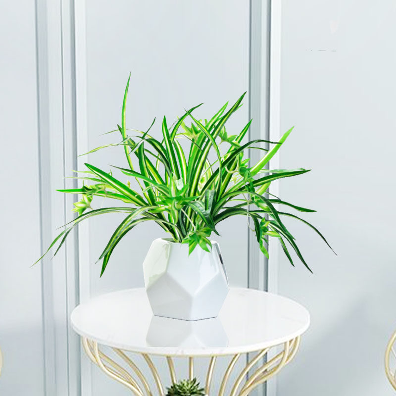 Simulation green plant potted green radish Chlorophytum plastic plant bonsai fake flower living room wall hanging decorative ornament flower art