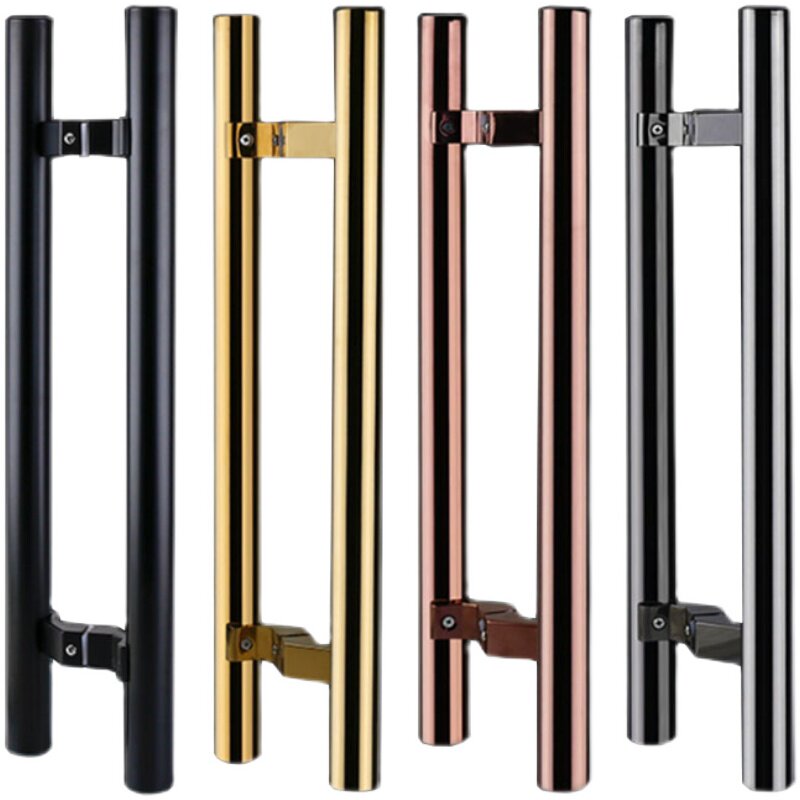 Thicken stainless steel glass door handle rose gold and wood door handle black titanium gold round pipe shop door to large handle